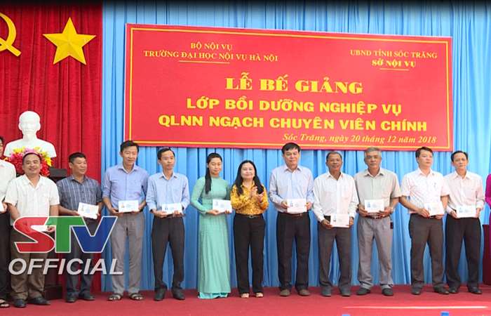 Sáng ngày 20/12, Sở Nội vụ tỉnh Sóc Trăng vừa tổ chức lễ bế giảng Lớp bồi dưỡng nghiệp vụ Quản lý nhà nước ngạch chuyên viên chính năm 2018, diễn ra từ ngày 14/7 đến 14/10/2018.
