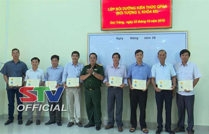 Sáng ngày 23/10, Trường Quân sự tỉnh Sóc Trăng tổ chức bế giảng lớp bồi dưỡng kiến thức quốc phòng - an ninh đối tượng 3, khóa 65 năm 2018 cho gần 50 cán bộ trưởng, phó phòng cấp tỉnh, huyện và tương đương.