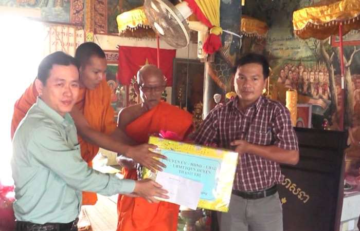 Sáng ngày 9/10, Đoàn cán bộ tỉnh Sóc trăng cùng lãnh đạo thị xã Ngã Năm đến thăm, tặng quà chùa Ô Chum ở xã Vĩnh Qưới, thị xã Ngã Năm nhân dịp lễ Sen Đôn Ta.
