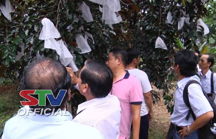 Chi cục Trồng trọt và Bảo vệ thực vật Sóc Trăng kết nối với 1 công ty ở thành phố Hồ Chí Minh chuyên thu mua xuất khẩu trái cây sang thị trường châu Âu và Mỹ, đến khảo sát vùng trồng vú sữa tím của Hợp tác xã Nông nghiệp Trinh Phú, xã Trinh Phú, huyện Kế Sách.