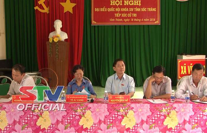 Sáng ngày 18/6, đoàn ĐBQH tỉnh Sóc Trăng đơn vị số 1 gồm: ông Nguyễn Văn Thể, Ủy viên BCH Trung ương Đảng, Bộ trưởng Giao thông vận tải, bà Tô Ái Vang, Phó Trưởng đoàn chuyên trách đoàn ĐBQH tỉnh Sóc Trăng, ông Hoàng Thanh Tùng, Phó Chủ nhiệm Ủy ban Pháp luật của Quốc hội, đã có buổi tiếp xúc cử tri xã Vĩnh Thành, huyện Thạnh Trị.