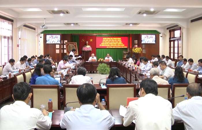 | Lãnh đạo tỉnh nghe báo cáo công tác giải quyết khiếu nại, tố cáo phức tạp kéo dài trên địa bàn. |
