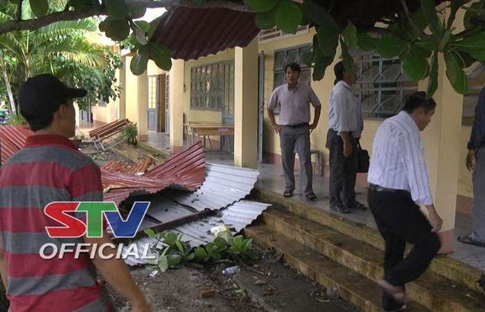 Vào khoảng 15h40 phút ngày 8/6, mưa kèm theo gió lốc mạnh đã làm tốc mái dãy hội trường và một phòng học tại trường tiểu học Tân Thạnh A, ấp Cái Quanh, xã Tân Thạnh huyện Long Phú.