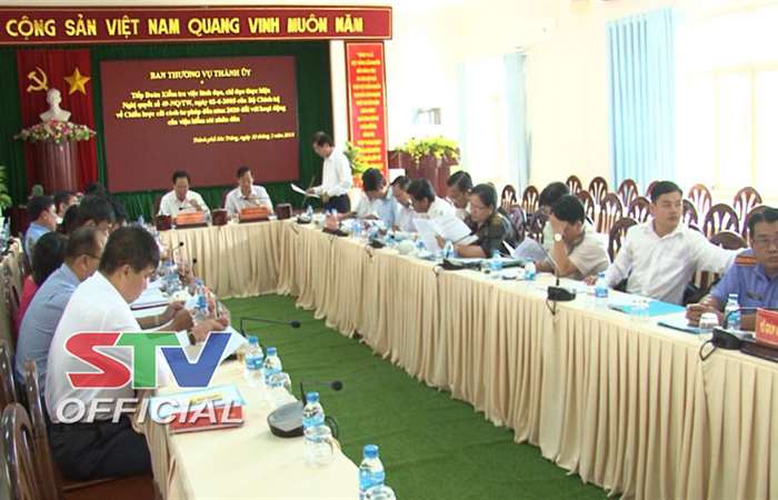 Chiều ngày 30/5, Tổ giúp việc đoàn kiểm tra của Ban Thường vụ Tỉnh ủy Sóc Trăng do ông Lê Hữu Nghĩa, Trưởng Ban Nội chính Tỉnh ủy làm Trưởng đoàn, đã làm việc với Ban Thường vụ Thành ủy Sóc Trăng về việc triển khai kết luận kiểm tra việc lãnh đạo, chỉ đạo thực hiện Nghị quyết 49 của Bộ Chính trị về chiến lược cải cách Tư pháp đến năm 2020.