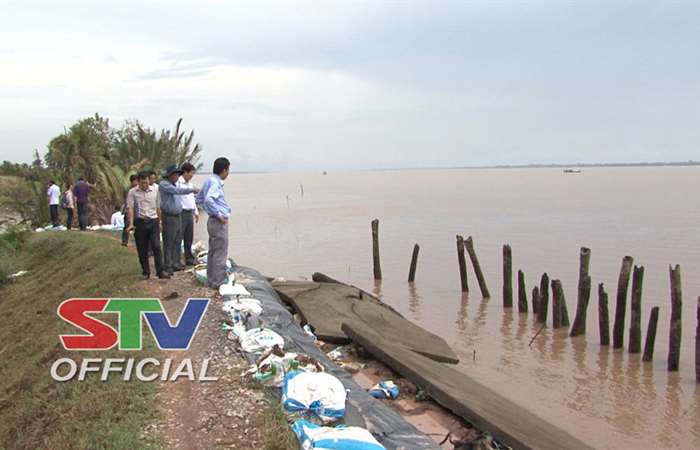 | Khảo sát tình hình sạt lở ở huyện Cù Lao Dung. |