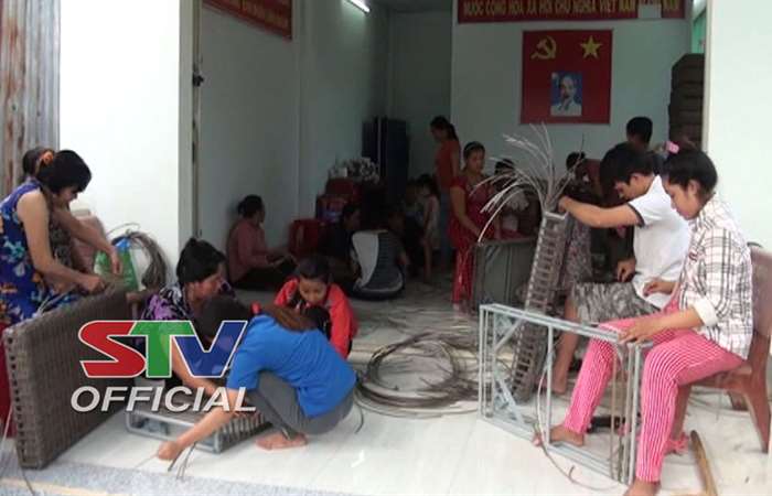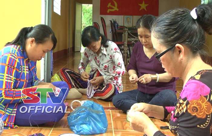 Trung tâm Giáo dục nghề nghiệp - Giáo dục thường xuyên huyện Kế Sách phối hợp xã Nhơn Mỹ, tổ chức lớp dạy nghề kết cườm, có 18 chị em tham gia.