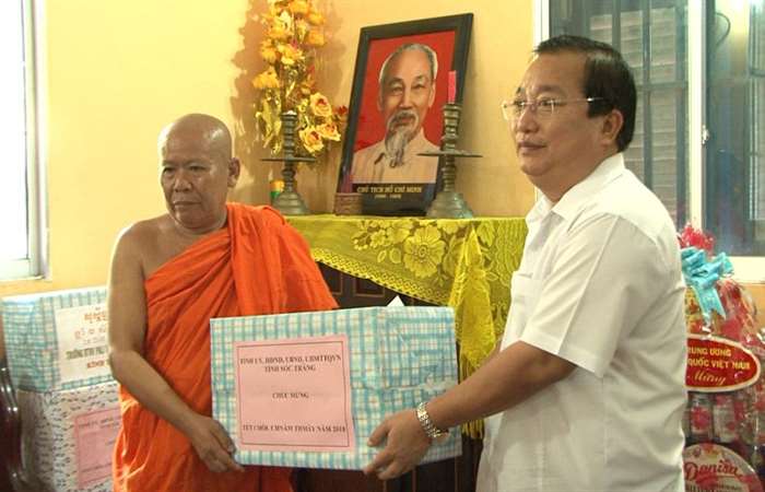 | Bí thư Tỉnh ủy chúc Tết Chôl Chnăm Thmây tại TP Sóc Trăng. |