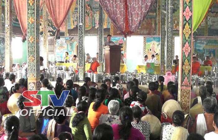 | Tặng quà chùa Luông Bassac Bãi Xàu, thị trấn Mỹ Xuyên. |