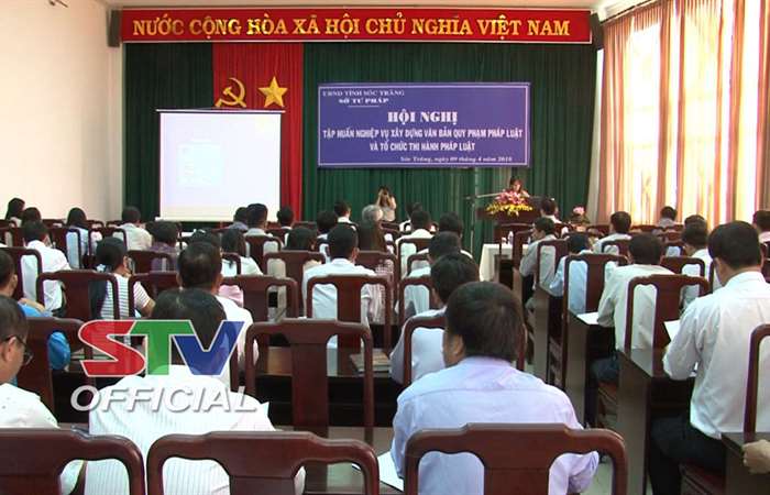 Sáng ngày 9/4, tại Trung tâm Văn hóa hội nghị tỉnh Sóc Trăng, Sở Tư pháp tổ chức tập huấn nghiệp vụ xây dựng văn bản quy phạm pháp luật và tổ chức thi hành pháp luật cho trên 200 công chức văn phòng, công chức pháp chế của các Sở, ngành tỉnh; lãnh đạo và công chức văn phòng HĐND, UBND, Phòng Tài chính, Phòng Tư pháp cấp huyện và lãnh đạo UBND xã, phường, thị trấn trong tỉnh.