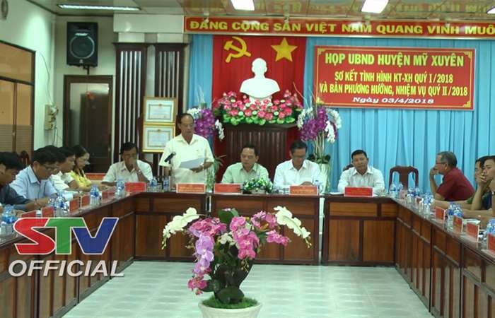 UBND huyện Mỹ Xuyên tổ chức sơ kết tình hình kinh tế -xã hội quý I và đề ra phương hướng, nhiệm vụ quý II/2018, trong đó triển khai các biện pháp phòng, chống hạn, mặn, đẩy nhanh tiến độ thực hiện công tác thủy lợi nội đồng kết hợp giao thông nông thôn, phục vụ tốt nuôi tôm chính vụ năm 2018.