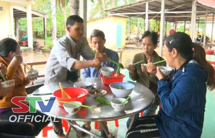Từ sáng ngày 25/12, chùa Hội Phước, xã Lịch Hội Thượng, huyện Trần Đề đã phát trên 150 suất cơm chay miễn phí cho người dân đi tránh bão.