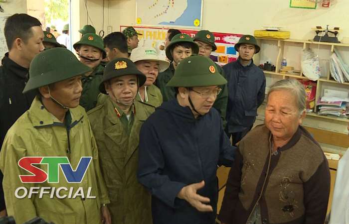 Tối 24/12, ông Lâm Văn Mẫn, Ủy viên dự khuyến BCH Trung ương Đảng, Phó Bí thư Tỉnh ủy, Chủ tịch HĐND tỉnh Sóc Trăng cùng lãnh đạo thị xã Vĩnh Châu, đến thăm hỏi người dân sau khi di dời vào các điểm tránh bão ở xã Vĩnh Hải.