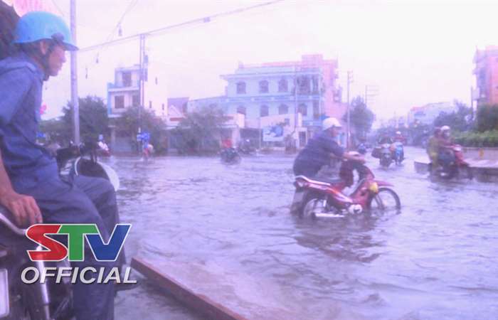 Đêm 1/11 đến sáng ngày 2/11, do ảnh hưởng của áp thấp nhiệt đới, ở thành phố Sóc Trăng đã mưa lớn suốt đêm, khiến các tuyến đường bị ngập sâu, gây khó khăn cho sinh hoạt và lưu thông của người dân.