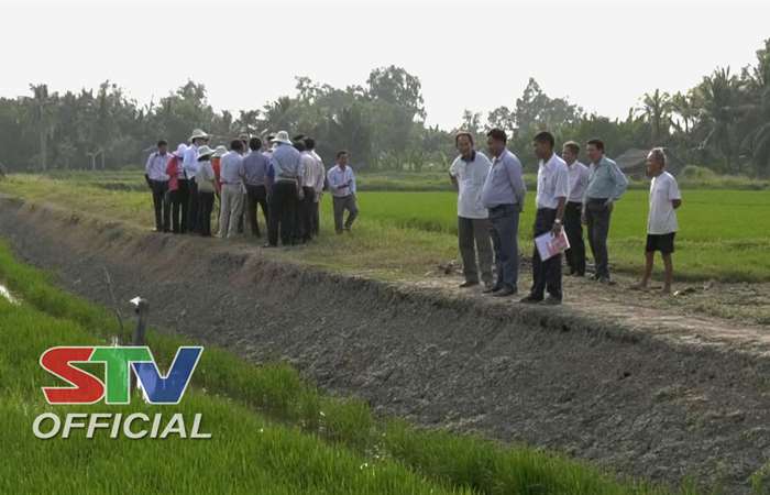 Đại diện Tập đoàn Cơ sở hạ tầng Châu Á AIC Nhật Bản đã đến thăm mô hình Lúa thơm - Tôm sạch tại các Hợp tác xã ở huyện Mỹ Xuyên.