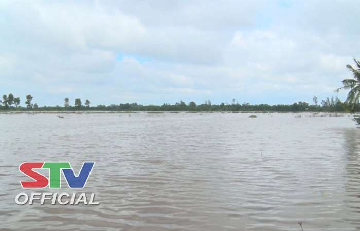 Với diễn biến phức tạp của triều cuờng, vừa qua, các đọan bờ bao của nguời dân ở xã An Thạnh Tây, thị trấn Cù Lao Dung, huyện Cù Lao Dung đã gia cố nay tiếp tục vỡ, chính quyền địa phuơng và người dân đang cố gắng khắc phục.
