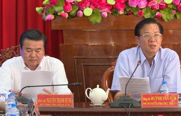 Sáng ngày 11/7, ông Huỳnh Văn Sum, Phó Bí thư Thường trực Tỉnh ủy Sóc Trăng; ông Lâm Tấn Hòa, Trưởng Ban Tuyên giáo Tỉnh ủy cùng đoàn công tác, có buổi làm việc với Huyện ủy Long Phú về tình hình kinh tế - xã hội của huyện 6 tháng đầu năm 2017.