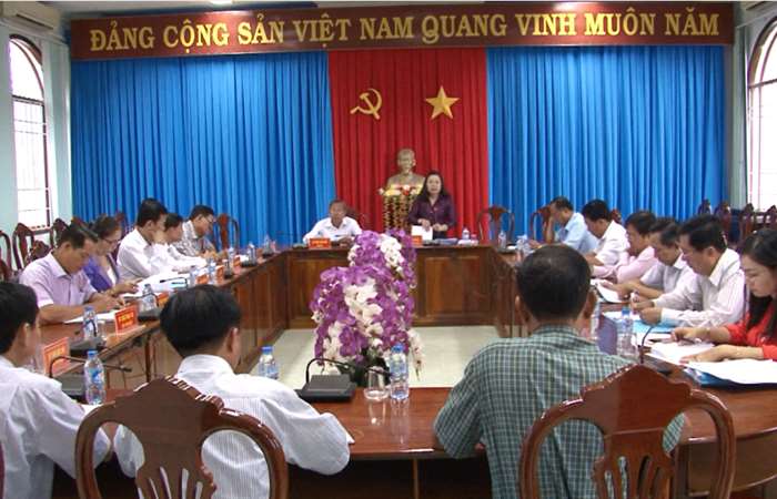 | Thường Trực Huyện ủy, UBND huyện Mỹ Xuyên làm việc với các cơ quan Nội chính huyện. |