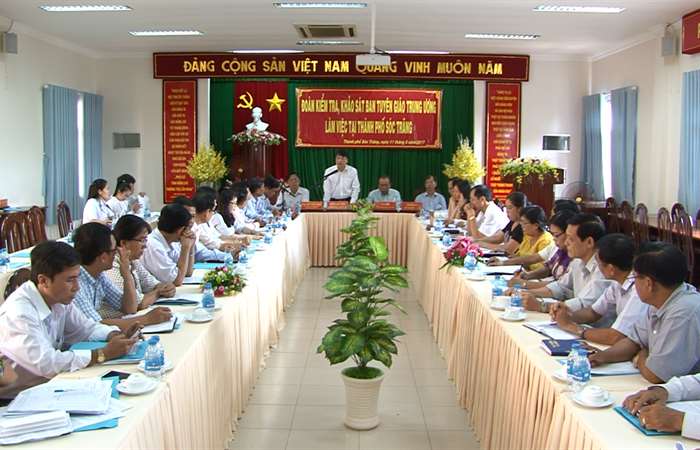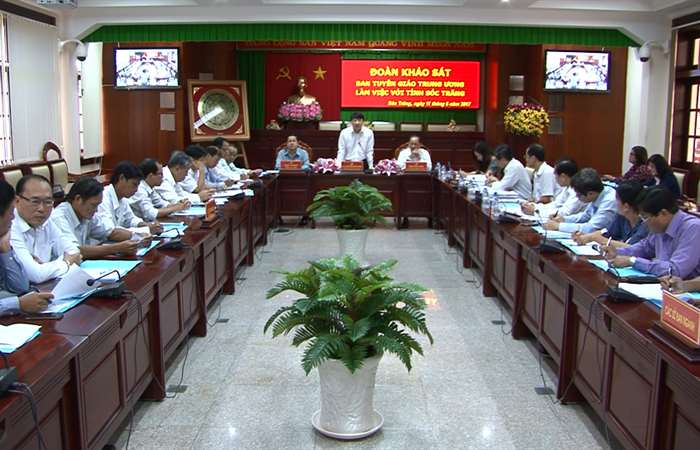 Chiều ngày 11/5, đoàn kiểm tra, khảo sát của Ban Tuyên giáo Trung ương có buổi làm việc tại thành phố Sóc Trăng. Tiếp đoàn có lãnh đạo một số Sở, Ban, Ngành tỉnh và lãnh đạo Thành ủy, UBND thành phố Sóc Trăng.