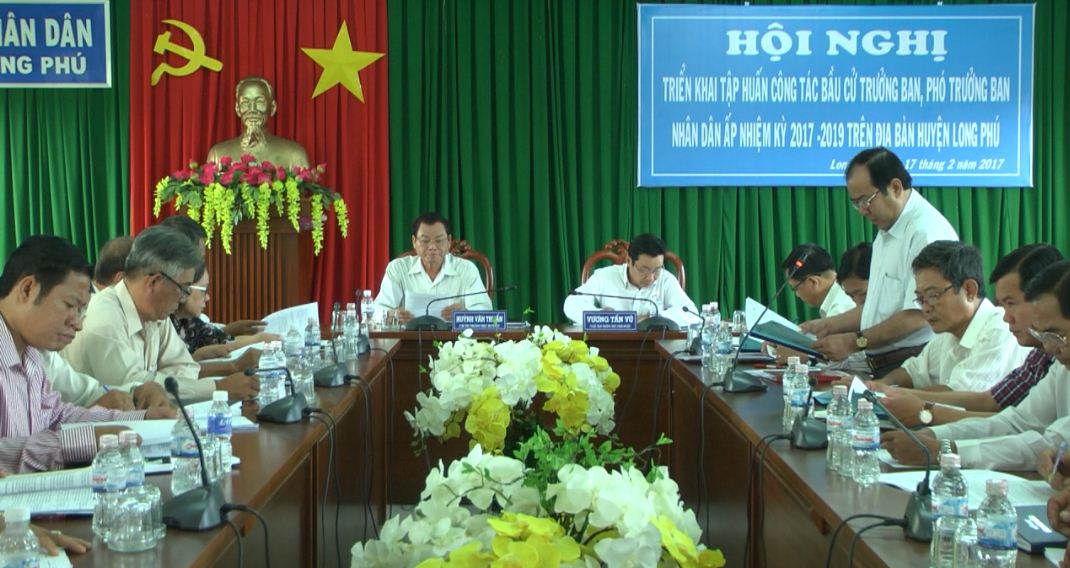 Sáng ngày 17/2, UBND huyện Long Phú phối hợp Ủy ban MTTQ Việt Nam huyện, tổ chức tập huấn công tác bầu cử Trưởng, Phó Ban Nhân dân dân ấp, khóm, nhiệm kỳ 2017 - 2019 cho các Bí thư, Chủ tịch UBND, Chủ tịch Ủy ban MTTQ VN các xã, thị trấn trong huyện.