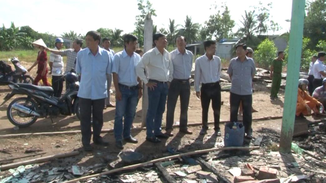 | Lãnh đạo huyện Trần Đề thăm các gia đình bị hỏa hoạn. |
