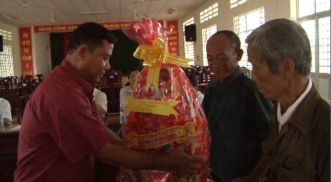 | Tặng quà Tết các gia đình chính sách, cán bộ hưu trí ở thị trấn Long Phú. |
