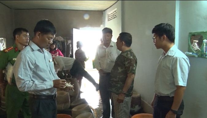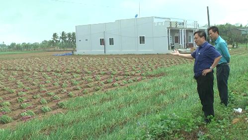 | Khảo sát tình hình thiệt hại hành tím ở Vĩnh Châu. |