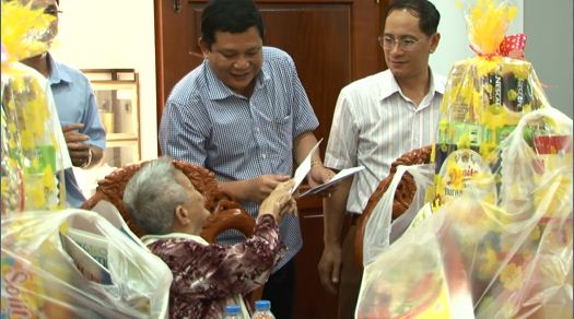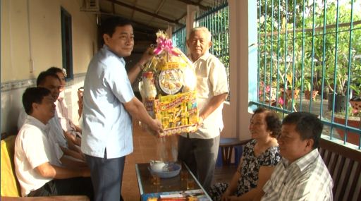 | Chúc Tết cán bộ hưu trí ở thành phố Sóc Trăng. |