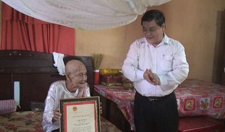 | Mừng thọ các cụ tròn 100 tuổi ở huyện Trần Đề. |