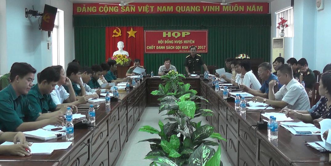 Hội đồng Nghĩa vụ quân sự huyện Châu Thành tổ chức cuộc họp báo cáo kết quả sơ tuyển sức khỏe thanh niên thực hiện nghĩa vụ quân sự năm 2017 và kết quả bình nghị lần 1, chuẩn bị cho bình nghị lần 2 vào ngày 19/12 tới. Dự hội nghị có ông Châu Văn Chuyển, Bí thư Huyện ủy Châu Thành.