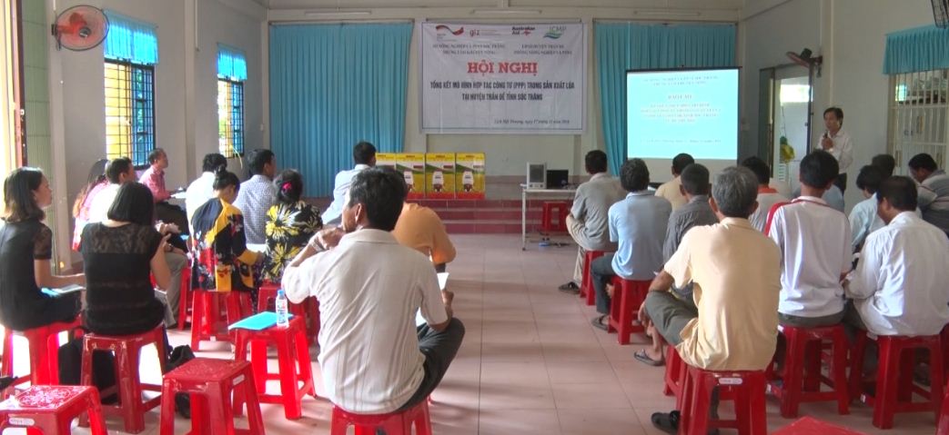 Trung tâm Khuyến nông Sóc Trăng tổ chức hội nghị tổng kết mô hình hợp tác công, tư trong sản xuất lúa cánh đồng lớn vụ hè thu 2016, tại thị trấn Lịch Hội Thượng, huyện Trần Đề.