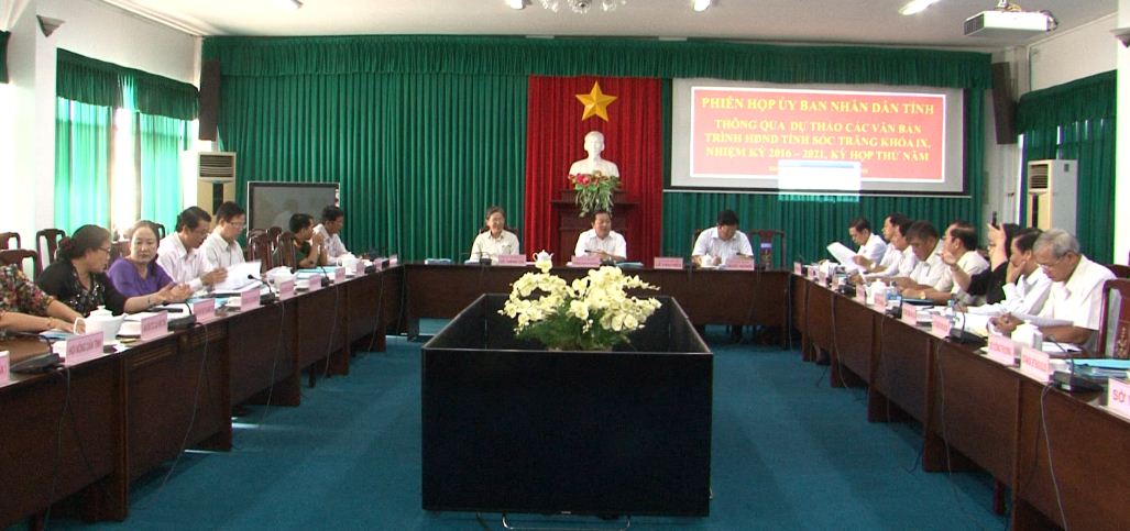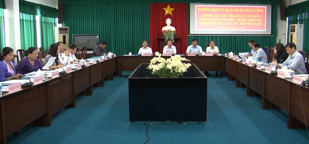 Ngày 15/11, UBND tỉnh Sóc Trăng tổ chức phiên họp thông qua dự thảo các văn bản trình tại kỳ họp thứ V, HĐND tỉnh khóa IX, nhiệm kỳ 2016-2021. Ông Trần Văn Chuyện, Phó Bí thư Tỉnh ủy, Chủ tịch UBND tỉnh chủ trì cuộc họp, cùng dự có các Phó Chủ tịch: Lê Thành Trí, Lê Văn Hiểu, Ngô Hùng và lãnh đạo HĐND tỉnh, các Ban của HĐND, các Sở, Ngành liên quan.