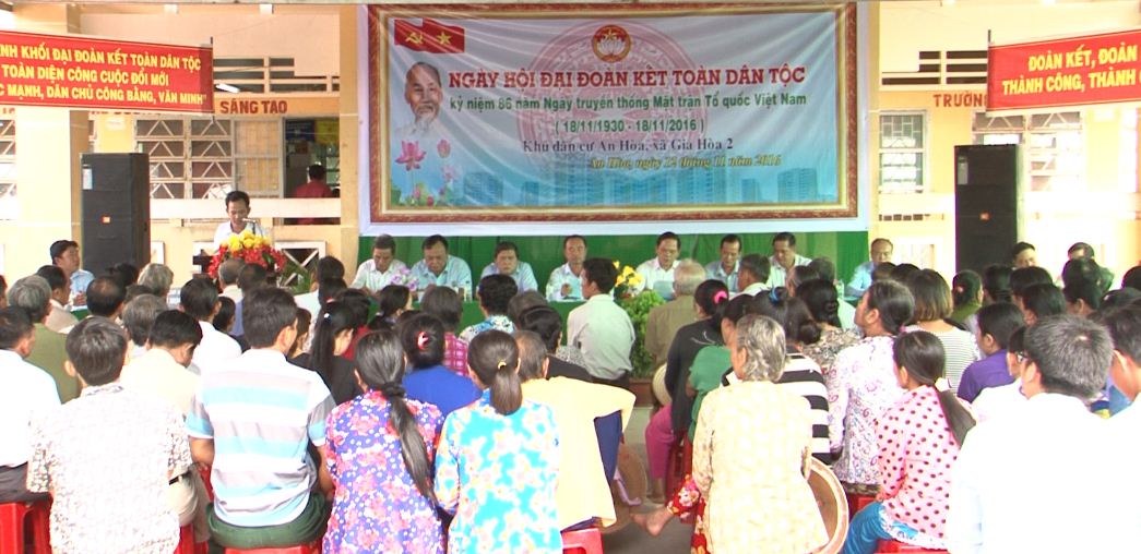 | Khu dân cư ấp An Hòa, xã Gia Hòa 2, tổ chức ngày hội Đại đoàn kết toàn dân tộc. |