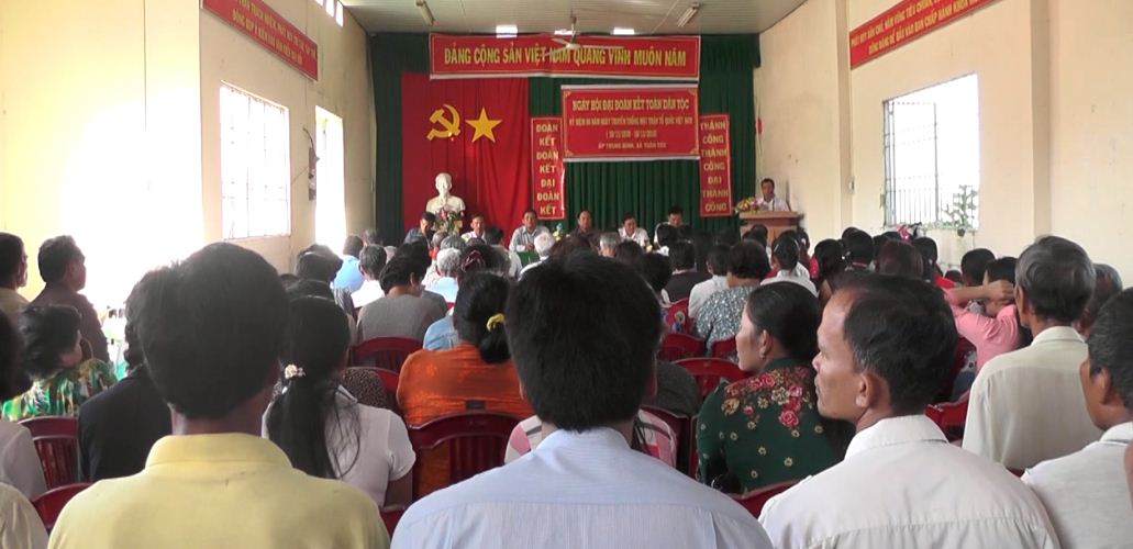 Sáng ngày 11/11, ấp Trung Bình, xã Tuân Tức, huyện Thạnh Trị tổ chức ngày hội Đại đoàn kết toàn dân tộc. Đây là ấp được MTTQ tỉnh chọn làm điểm chỉ đạo. Đến dự có ông Dương Sà Kha, Chủ tịch Ủy ban MTTQ Việt Nam tỉnh Sóc Trăng; ông Nguyễn Hoàng Lộc, Bí thư Huyện ủy Thạnh Trị.