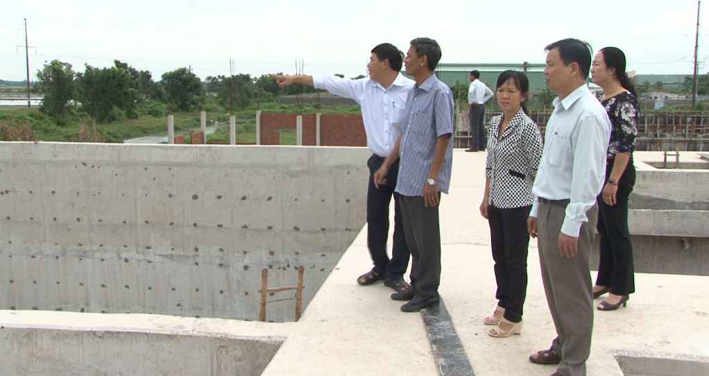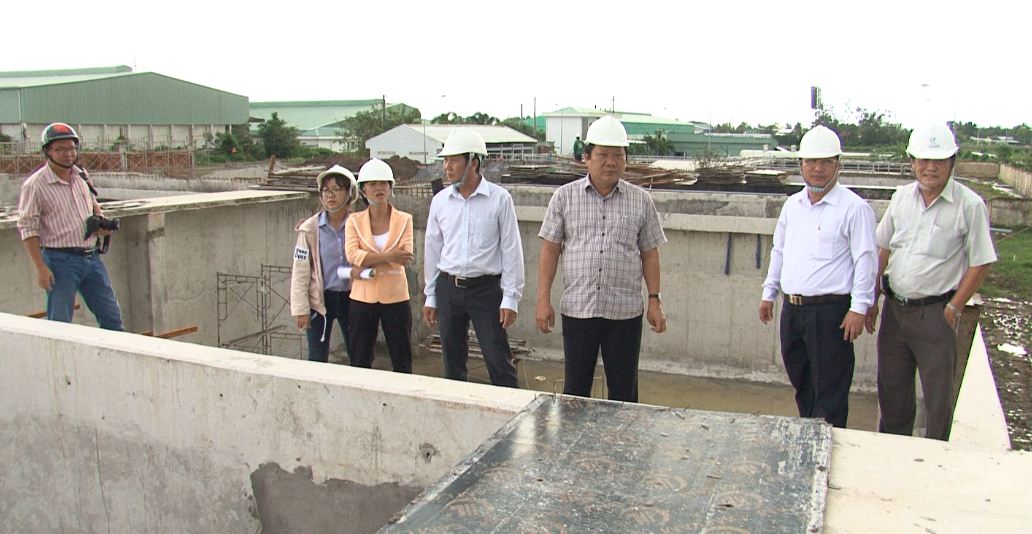 | Lãnh đạo UBND tỉnh kiểm tra tiến độ thi công nhà máy xử lý nước thải. |