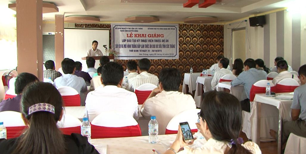 | Lớp tập huấn về dự án “Xây dựng mô hình trồng bắp làm thức ăn cho bò sữa trên địa bàn tỉnh Sóc Trăng”. |