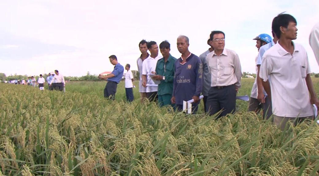 Trung tâm Giống cây trồng Sóc Trăng tổ chức hội thảo giống lúa chống chịu mặn vụ hè thu tại xã Lịch Hội Thượng, huyện Trần Đề. Lãnh đạo các Viện, Trường và nông dân địa phương tới tham dự.