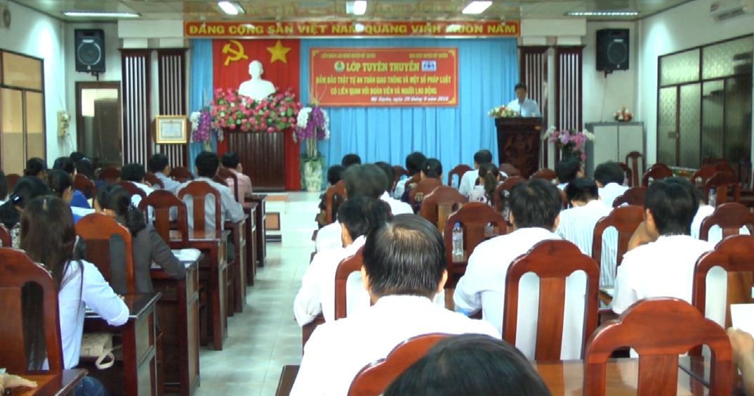 LĐLĐ huyện Mỹ Xuyên phối hợp tổ chức tuyên truyền bảo đảm trật tự an toàn giao thông cho trên 80 Chủ tịch Công đoàn và đoàn viên cơ sở các ban, ngành huyện.