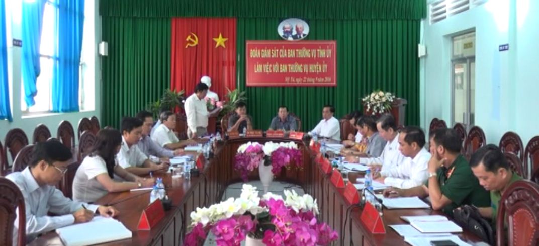 | Đoàn giám sát của Tỉnh ủy Sóc Trăng làm việc với BTV Huyện ủy Mỹ Tú. |