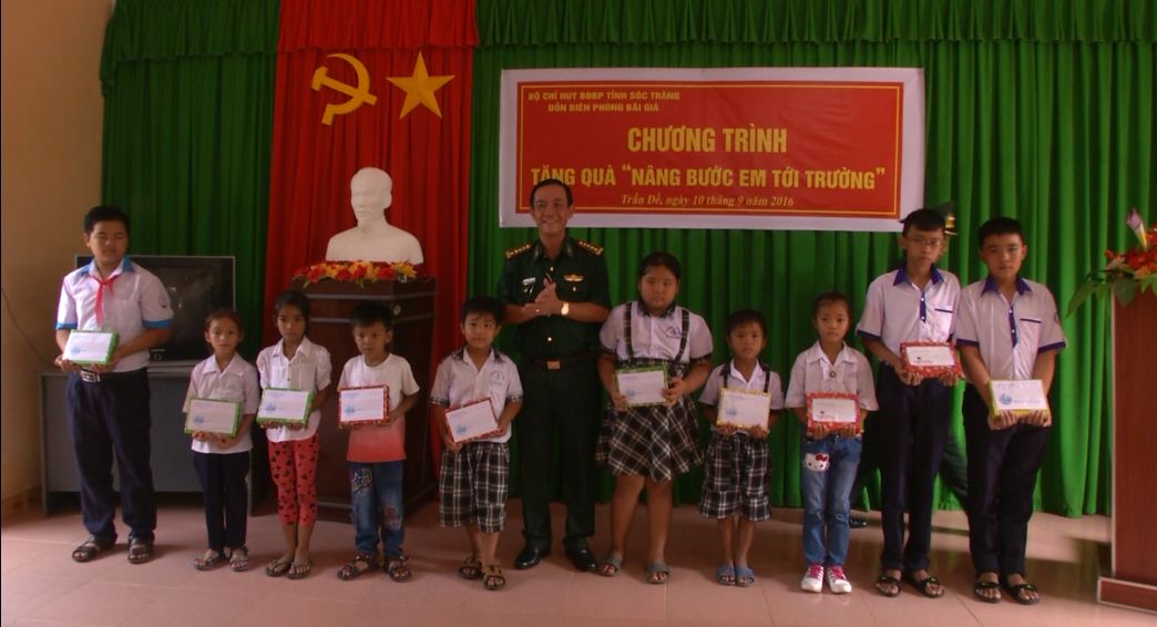 Thực hiện Chương trình Nâng bước em đến trường do Bộ Tư lệnh BĐBP phát động, vừa qua, tại Đồn Biên phòng Bãi Giá, Bộ Chỉ huy BĐBP Sóc Trăng tổ chức lễ nhận đỡ đầu và trao học bổng cho 12 học sinh hoàn cảnh khó khăn ở huyện Trần Đề.