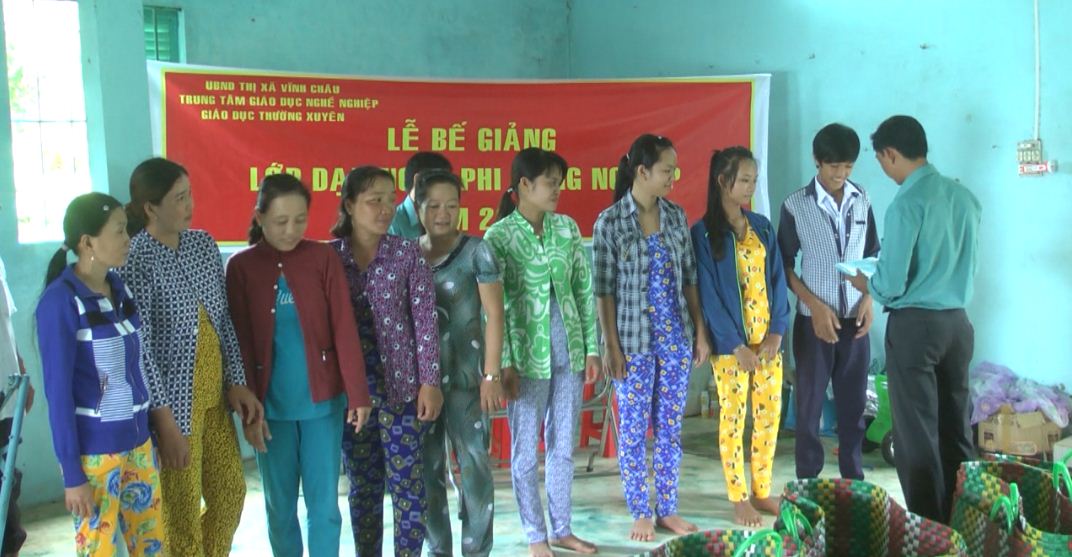 Trung tâm Giáo dục nghề nghiệp và Giáo dục thường xuyên thị xã Vĩnh Châu đã tổ chức bế giảng lớp dạy nghề đan đát hàng thủ công mỹ nghệ tại ấp Tân Hòa, xã Vĩnh Tân.