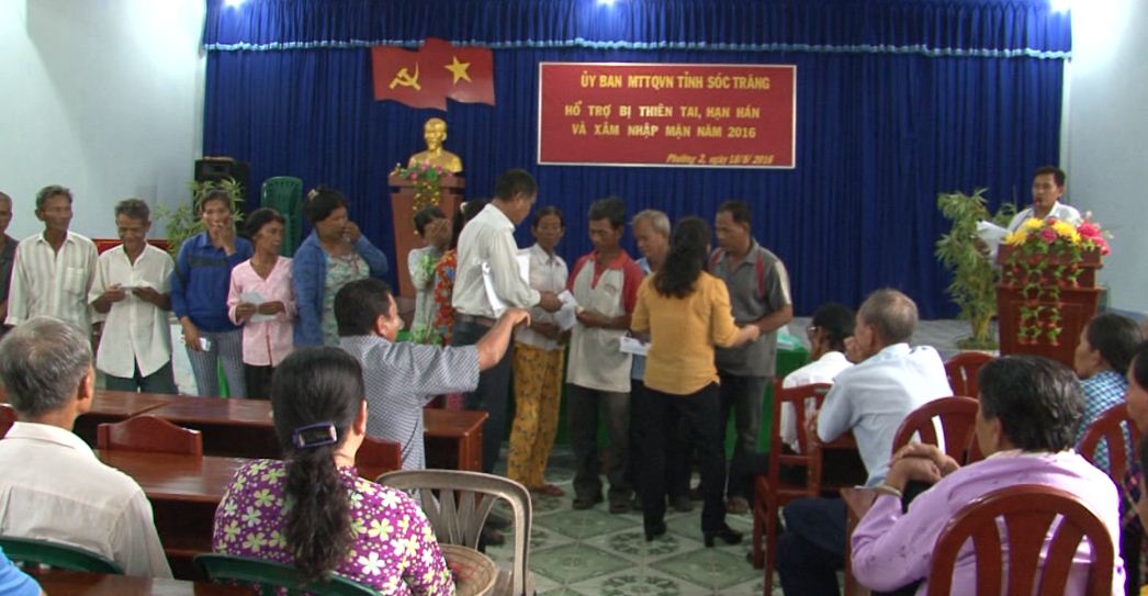 Ủy ban MTTQ Việt Nam tỉnh Sóc Trăng phối hợp thị xã Vĩnh Châu và UBND phường 2, tổ chức tặng quà cho hộ Khmer nghèo bị ảnh hưởng hạn, mặn vừa qua.