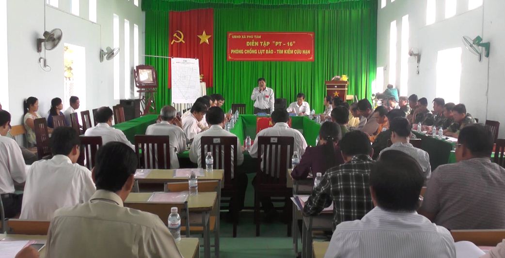 Ban Chỉ đạo diễn tập huyện Châu Thành, Đảng ủy, UBND xã Phú Tâm tổ chức diễn tập phòng chống lụt bão, tìm kiếm cứu nạn năm 2016.