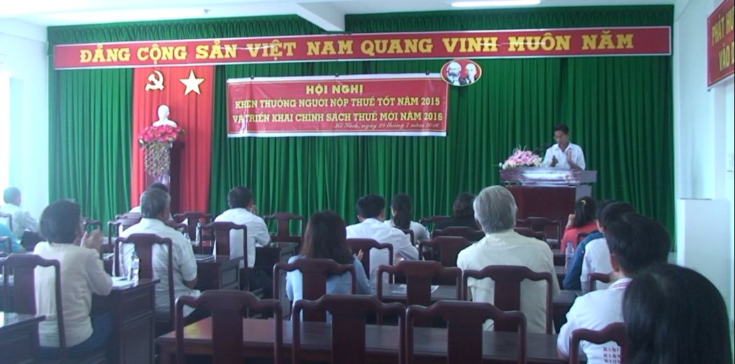 Chi Cục Thuế huyện Kế Sách tổ chức Hội Nghị Tuyên dương, khen thưởng người nộp thuế tốt năm 2015 và triển khai các chính sách thuế mới năm 2016 cho hơn 40 đại biểu là Giám đốc và Kế toán của các doanh nghiệp trong huyện.