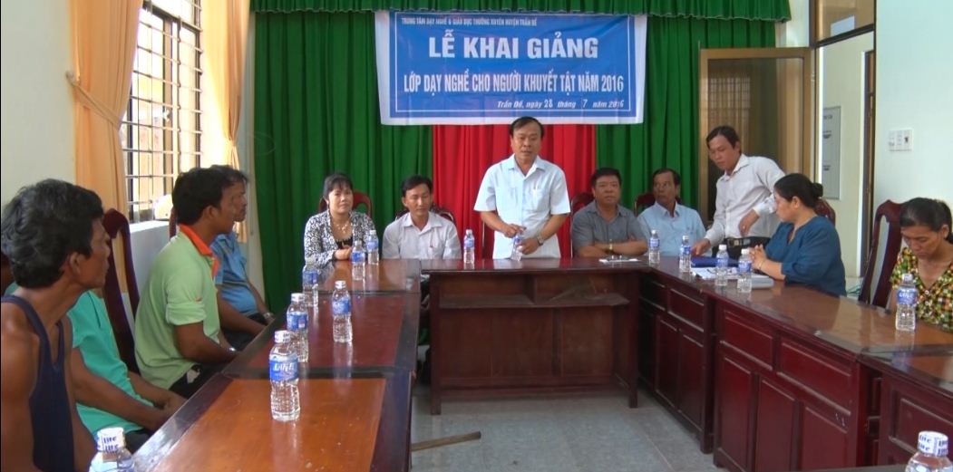 | Khai giảng lớp dạy nghề đan giỏ ni-lon cho người khuyết tật. |
