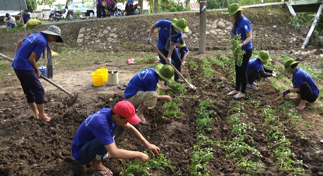Cùng ăn - cùng ở - cùng làm là những gì các bạn trẻ đã trải qua trong suốt những ngày tham gia chiến dịch. Nếu ngày đầu còn bỡ ngỡ với những công việc như đào đất, làm cỏ, đắp bờ… giờ đây các bạn đã quen dần và làm khá thành thạo các công việc thường nhật này. Em Nguyễn Mai Thanh Tính, trường Đại học Tài nguyên và Môi trường, TP Hồ Chí Minh, chia sẻ: “Lần đầu tiên em tham gia hoạt động mùa hè tình nguyện như: Tuyên truyền về bệnh sốt xuất guyết, cùng bà con làm vệ sinh môi trường. Tổ chức các trò chơi, ca múa cho các em thiếu nhi… chúng em rất được bà con quý mến”.