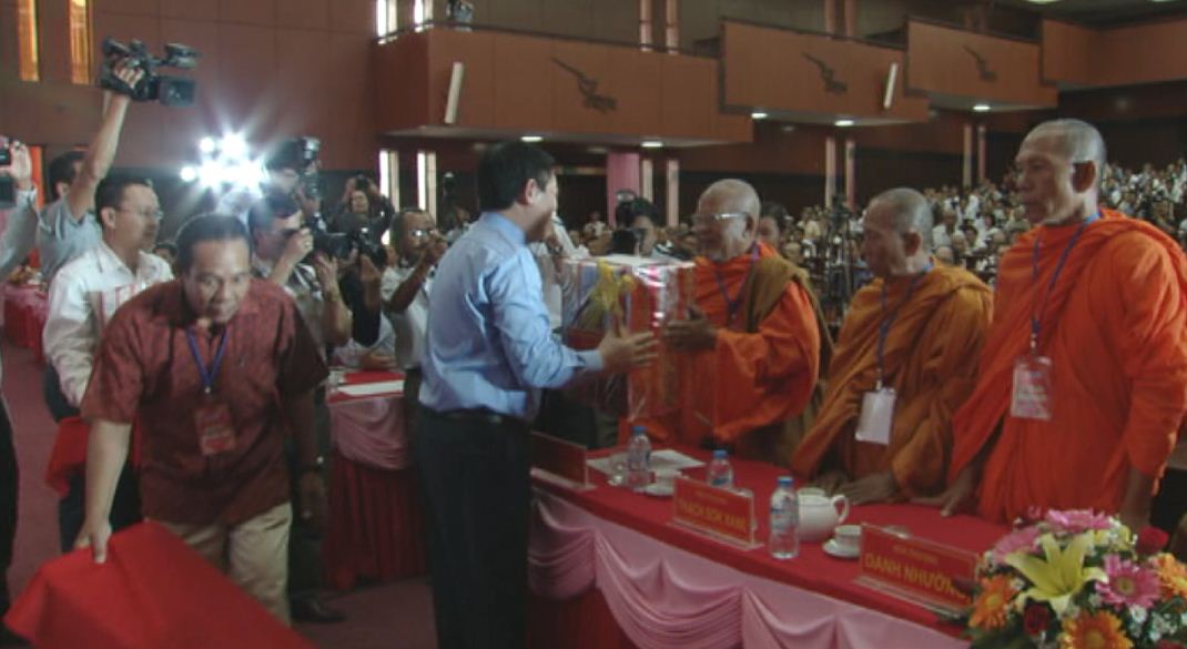 Tặng quà các vị chức sắc và Ban dân tộc các tỉnh Tây Nam Bộ.