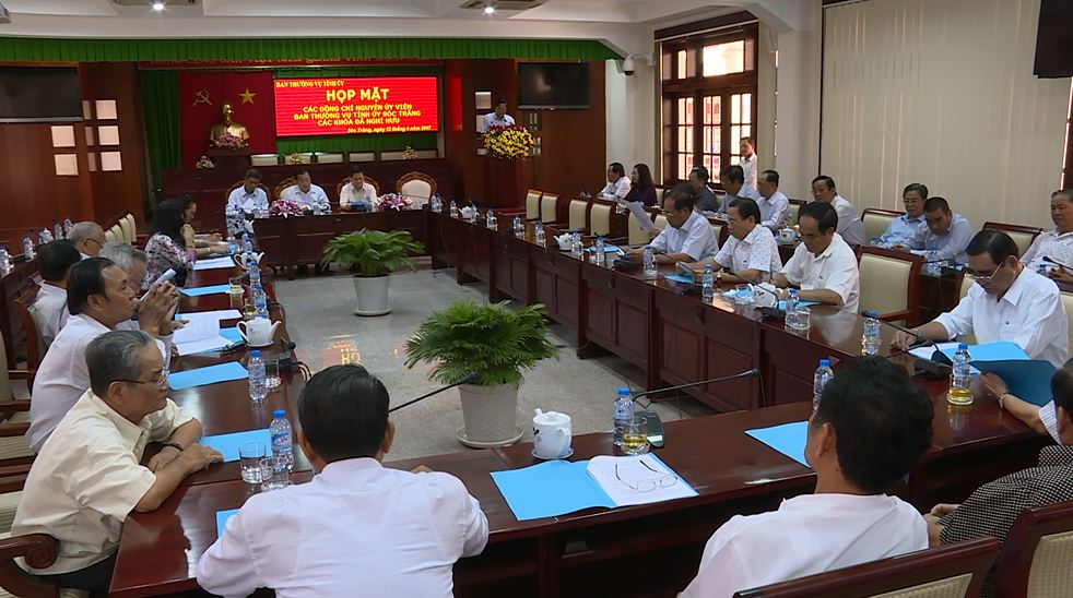 Tại buổi họp mặt, Ban Thường vụ Tỉnh ủy đã báo cáo tóm tắt tình hình kinh tế - xã hội, quốc phòng - an ninh, xây dựng hệ thống chính trị của tỉnh trong quý I và một số nhiệm vụ trong quý II/2017, nhất là công tác xúc tiến kêu gọi đầu tư thời gian qua, một số dự án đang được triển khai như Khu bến đỗ và phục vụ khách tham quan khu di tích chùa Chén Kiểu; dự án tuyến tàu du lịch từ Trần Đề ra Côn Đảo, dự án Nhà máy may công nghiệp củc Tổng công ty May Nhà Bè.