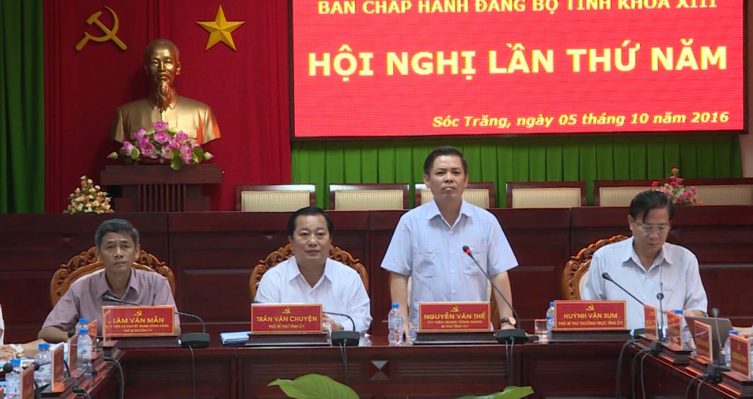 Sáng ngày 5/10, Hội nghị lần thứ 5 của Ban Chấp hành Đảng bộ tỉnh Sóc Trăng khóa XIII thảo luận các dự thảo Nghị quyết chuyên đề của Tỉnh ủy và tiến hành bế mạc. Đồng chí Nguyễn Văn Thể, Ủy viên BCH Trung ương Đảng, Bí thư Tỉnh ủy phát biểu chỉ đạo.