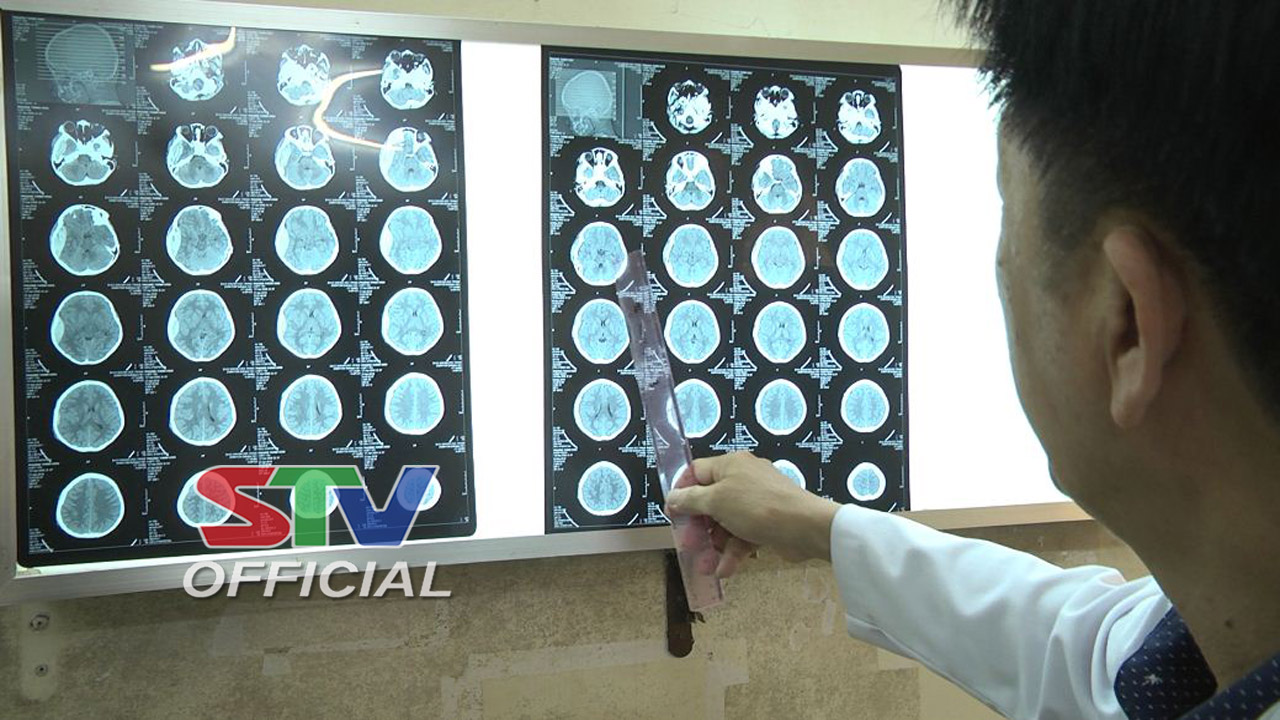 Bác sĩ kiểm tra phần bị chấn thương ở não của bệnh nhi Phương Thanh Hiền