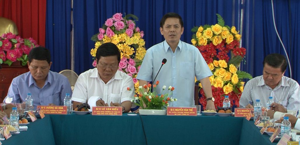 Đồng chí Nguyễn Văn Thể - Ủy viên Trung ương đảng - Bí thư Tỉnh ủy Sóc Trăng (người đứng) phát biểu chỉ đạo tại buổi làm việc với Đảng ủy - UBND thị trấn Đại Ngãi, huyện Long Phú